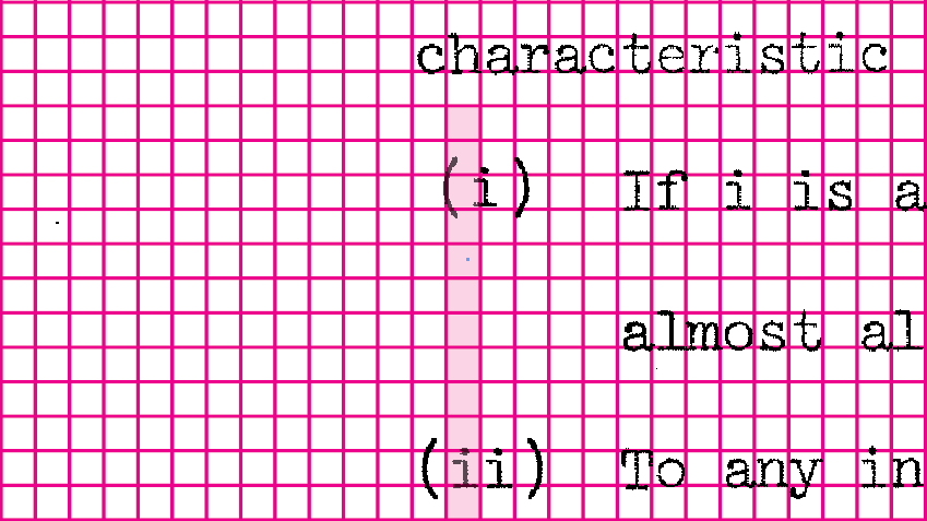 Look closely at the positions of the characters in this Page 50 highlight.  Focusing horizontally across each line, it is not a surprise that the characters fit so neatly into our 1/12” grid.  The thesis was typed on a 12 Pitch machine, which meant that the typewriter was set to type 12 characters per inch as a standard.